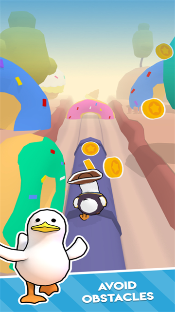 4、左右滑动鸭子可以控制鸭子前往不同赛道,避开障碍物。