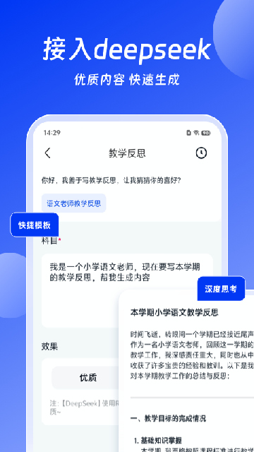 1.AI深度赋能:基于DeepSeek模型,精准理解用户需求,提供高质量输出。