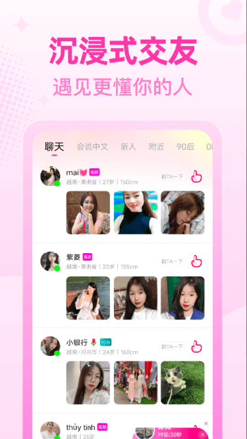 1.视频闪聊:一键匹配越南女性用户,5秒极速接通,实时视频互动打破语言与距离壁垒。