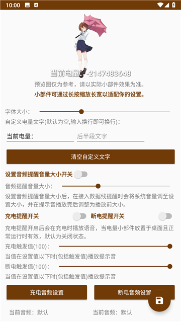 2、点击右上角的设置可以自定义音频、文字等内容。
