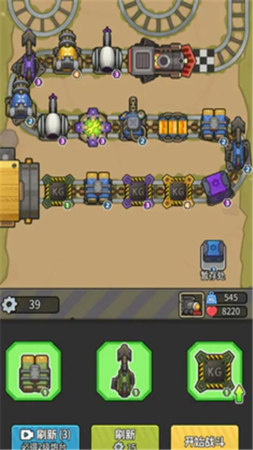 2、进入关卡后玩家需要将炮塔放在火车车厢上,相同的炮塔可以合并来提升等级。