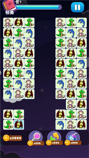 4、消除玩法很简单,只需要将相同两种牌连接在一起即可消除,但是注意两种牌的连接拐弯不能超过两个。