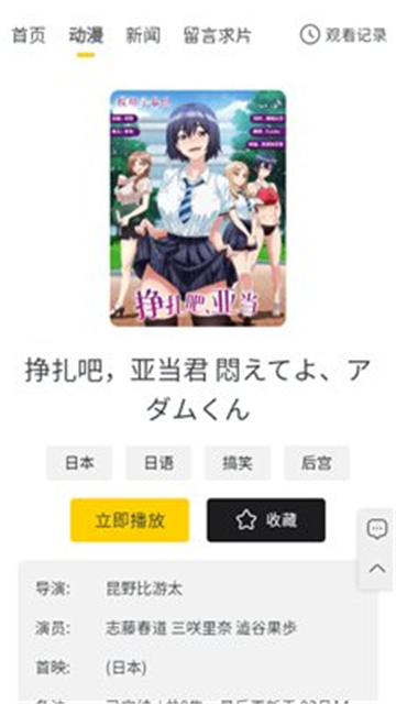 4. 播放与收藏:选择你想观看的动漫,点击播放按钮即可开始观看。你可以点击收藏按钮,将喜欢的作品添加到收藏夹,方便下次观看。