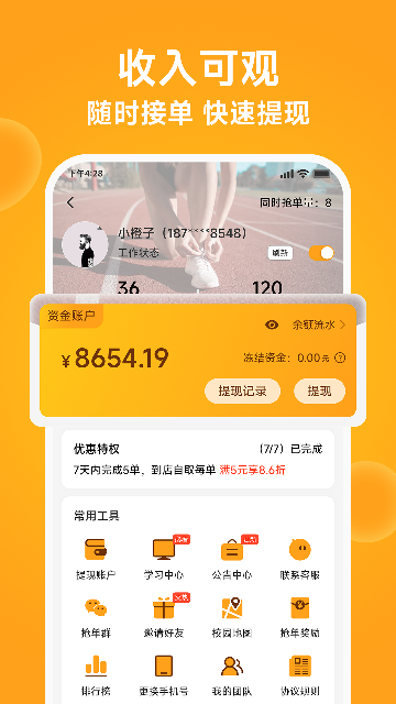 3.收益直观:收入明细一目了然,支持快速提现。