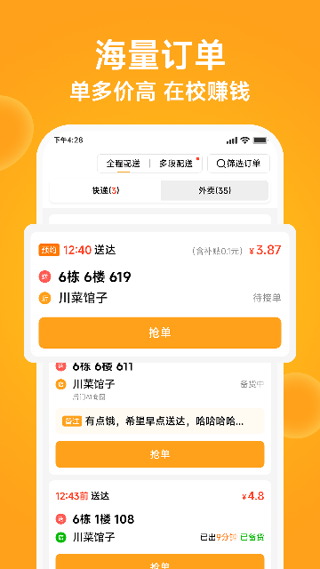 3.高效接单:智能匹配订单,减少等待时间。