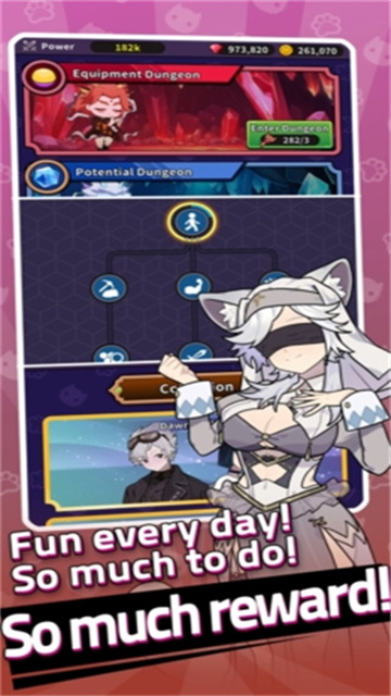 丰富和多种不同的猫娘角色,每一个猫娘都由独特的特征和技能,萌系画风融合奇幻元素,猫娘设计兼具可爱与战斗质感,主线剧情推进冥界探险,逐步揭开异变背后真相。