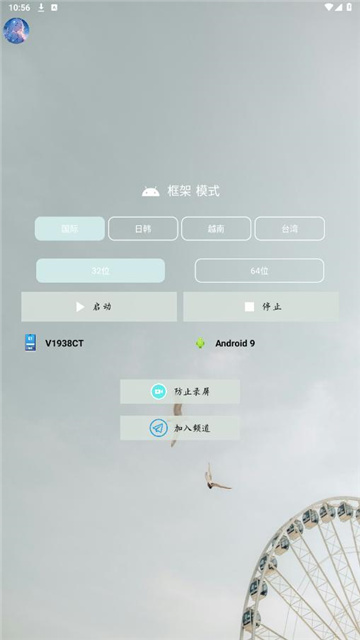 4、选择对应的游戏服务器及设备位数(32位或64位),开启防录屏保护,点击“启动”按钮