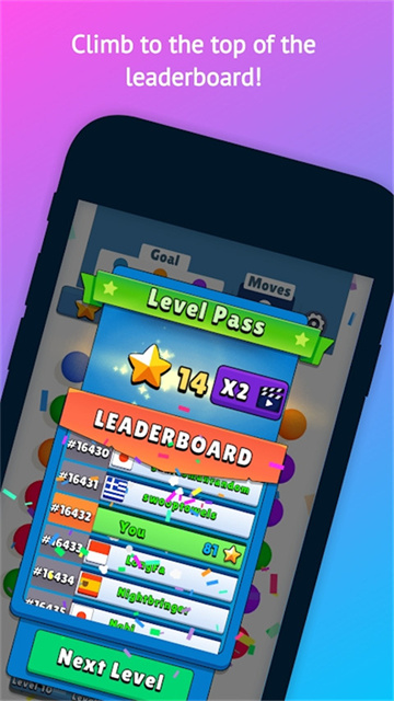 开心连球球是一款标准的趣味益智消除手游,玩法非常的简单,只需将相同颜色的球球链接起来就能消除,新的创意玩法,还有各种排行榜,乐趣多多,画面精美,配音休闲,可以让玩家体验到消除小游戏的快乐,超多游戏关卡,玩家要不断地挑战,后面也会难度增加,玩家要靠道具才能更好的通过。