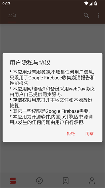 开启阅读统计功能,记录阅读时长、阅读字数、阅读书籍数量等数据,方便用户了解自己的阅读成果。软件具备云同步功能,用户登录账号后,可将书签、阅读记录、书源设置等数据同步至云端,在不同设备上登录账号即可同步数据,随时随地继续阅读。
