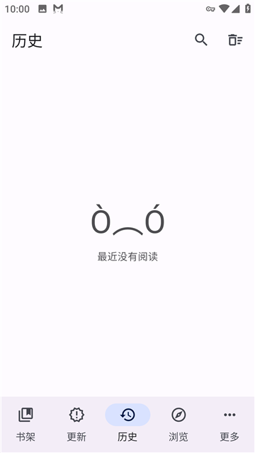 + 打开书架页面后,可以编辑书架并在右上角查看阅读历史。