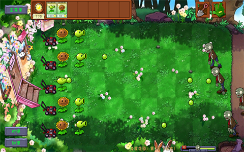 1、开局先种向日葵,然后那一路有僵尸就种豌豆,种下两排向日葵后有条件的可以给豌豆升一级,然后就可以强化向日葵了,升级选择第二个,可以加快向日葵的生产速度。