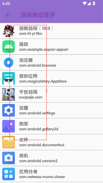 2、选择需要测试的应用。