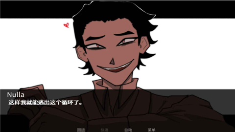 Nulla和Septem代表了两种截然不同的世界观,站在任何一方的角度去观察这场游戏都是合理的。他们都已经意识到自己所处的世界是虚拟的。Nulla因此陷入了存在主义的困境,他觉得一切都失去了意义,企图打破现有的秩序,摆脱代码的束缚。这也是为什么旁白/傀儡会提醒你,Nulla可能会利用你——如果没有你的选择,他无法改变任何事情。很难判断他是出于利用你的目的而假装爱你,还是因为将你视为最后的希望而不顾一切想要抓住你而爱上了你;