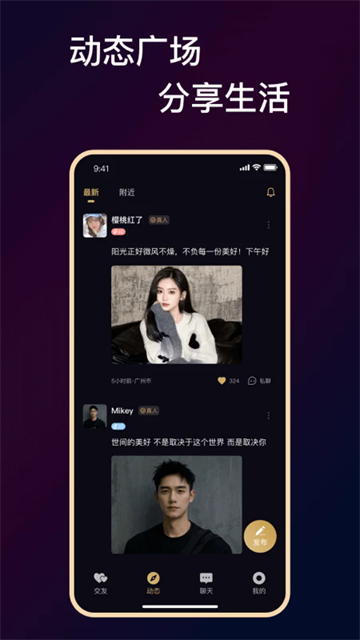 广场动态让您时刻了解同城陌生人动态,也可以随时分享您的精彩生活瞬间。