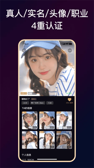 实名认证+职业认证+真人认证+头像认证,4重认证保障真实。