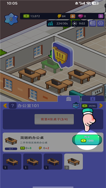 3、满足办公设施需要后可以与企业签约并增加声望,声望可以解锁更高级的设施。