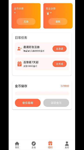 任务悬赏机制:完成每日签到、分享剧集、邀请好友等任务,可领取额外金币奖励,累计金币满10元即可提现至微信或支付宝,零门槛创收。