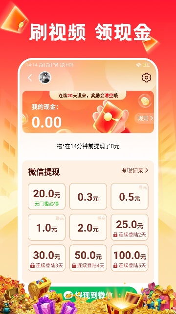 2.观看收益累积:通过浏览视频、完成互动任务解锁红包奖励,收益可直接提现至绑定账户。