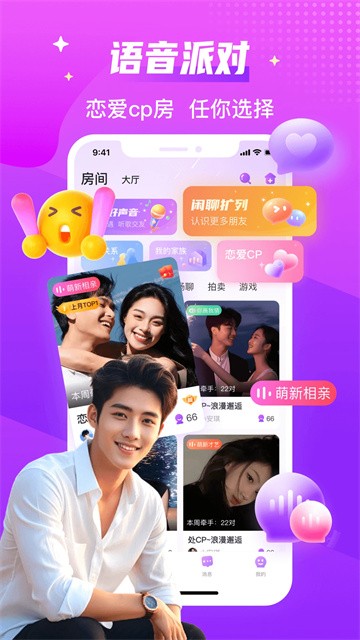 【语音房间】相亲房派对、小游戏、陪聊房、K歌房等个性化房间,等你来参与。