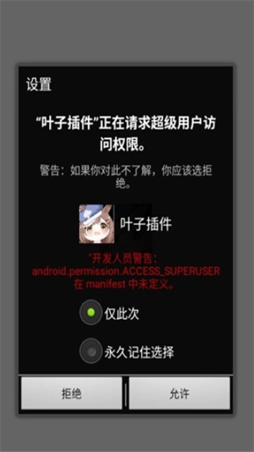 1、打开叶子插件后,首先确保已授权超级用户访问权限
