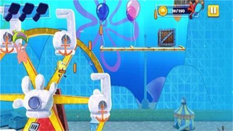 4、在每一个关卡的最后,玩家都必须和该场景的皮老板表兄弟来一场PK 赛!游戏过程中除了要躲避一系列障碍物以外,表兄弟们会在与海绵宝宝的追逐过程中投放爆炸物,玩家可以通过「冲刺」技巧来把这些爆炸物撞回给表兄弟们。当表兄弟们下方血条归零时,挑战就成功了!