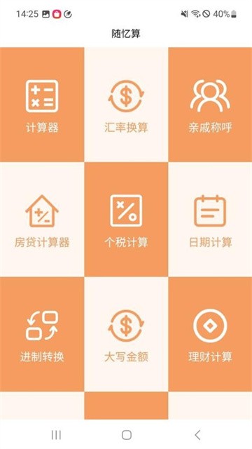随忆算app是一款多功能计算软件,软件中包含有计算器、亲戚称呼计算、汇率换算、日期计算、个税计算、房贷计算器等多种计算工具,让用户得到准确的计算结果查看,还可以提高各种数据的计算效率,轻松高效的计算各项数据,快速获取计算结果,非常的便捷好用。