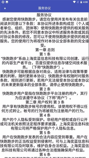 1、打开快跑跑步应用,阅读用户协议及隐私条款,点击同意进入主界面。