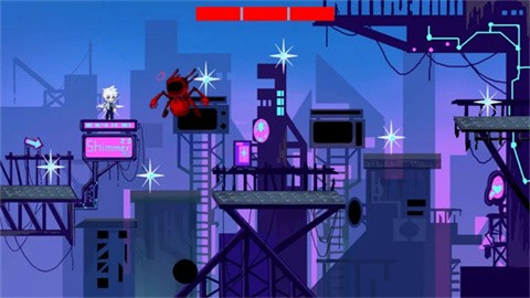 Shimmer以赛博朋克风格为主题进行打造,游戏采用经典赛博手绘风,霓虹线条与故障粒子交织,构建出层次丰富的横板城市,将控制主角Shimmer,通过触发场景异常点切换不同图层,在表世界与里世界之间自由穿行,每一次发现漏洞都像在数字牢笼中开辟新空间。