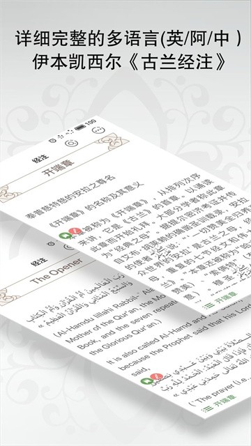 一零三章是一款精心打造的安卓手机应用,这里有电子版经书著作,并将著作翻译成为多国语言,而且详细解析经书每一句话的含义,软件利用现代科技手段,为穆斯林用户提供更便捷、精准的宗教服务和学习工具,帮助他们更好地践行信仰。