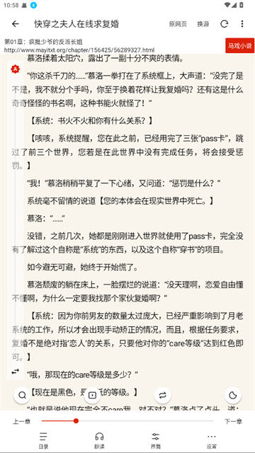 9、这时你就可以开始看小说了,单击屏幕还能够唤起功能页