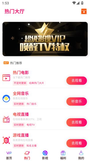 5、别忘了去“福利”专区看一看,里面有很多除了看视频之外的实用小功能可以体验。