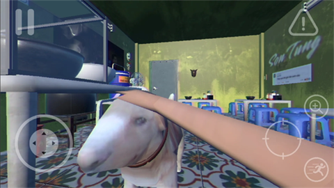 3、进入正式操作界面后,屏幕左侧为虚拟摇杆,用于控制角色的移动方向;右下角设有功能按钮,可用于奔跑,同时在部分场景下也承担返回作用。界面中带有瞄准镜图标的按钮是“交互键”,当靠近可互动的角色或物品时,点击即可触发对话、拾取或调查等互动内容。
