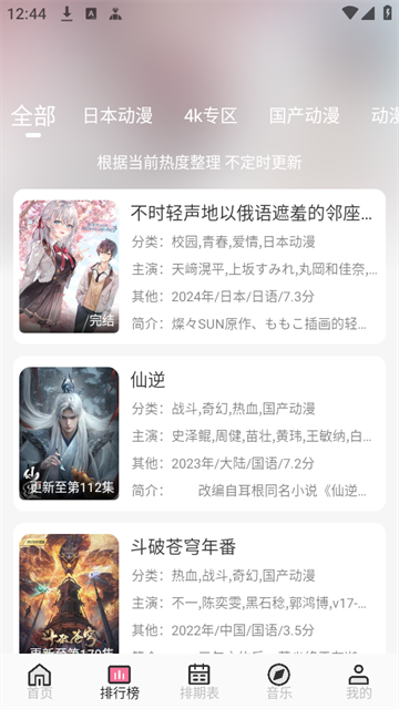 新番时间表:新番在礼拜几更新一目了然,方便你及时追番;