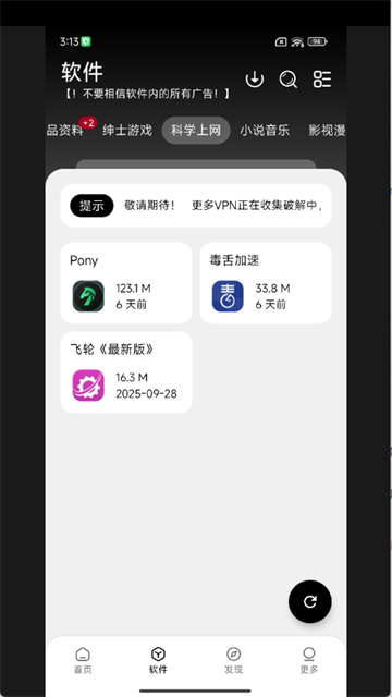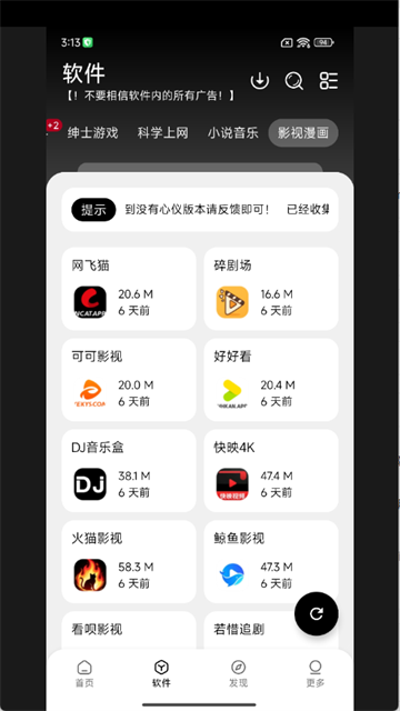 2、软件会及时更新软件资源,紧跟潮流,确保用户能够第一获取到最新、最热门的软件。