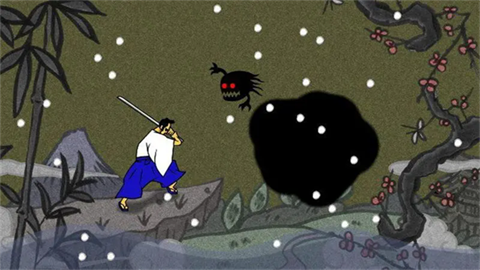 和GBA上的天狗类似,看见红眼恶灵后等它的ZHI ZHI声结束后隔一拍按A键出一刀,看到一群绿眼恶灵后按A+B用回旋斩斩杀,本关的难点不在于关卡,在于画面那稀奇古怪的画卷的干扰,有时画面会全部变黑,这时就要靠听声辨时了。