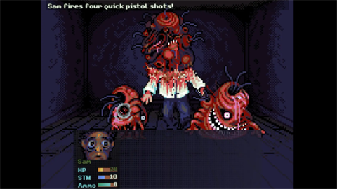 充满恐怖的冒险,黑暗的画面和惊险的背景音乐营造气氛,像素风格结合克苏鲁元素,屏幕扭曲和音效强化心理压迫感,灵活使用临时制造的武器以及在大楼走廊中收集到的各种物品。
