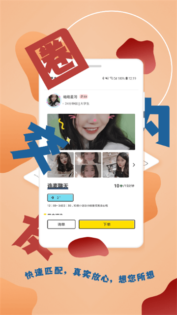 2、真人识别认证:通过视频(照片+视频)+24小时人工在线审核,拒绝照骗,告别抠脚大叔,告别不真心不真诚的聊天行为,提供给用户一个安全可靠、靠谱的面具附近单身男女的公园交友平台