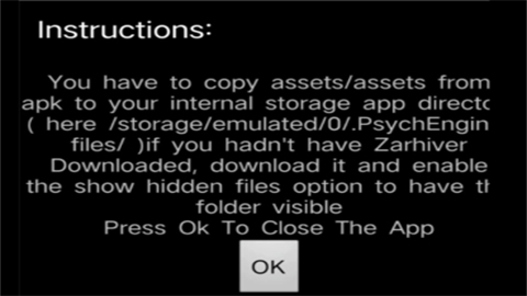 2.引擎包下载好后直接打开会出现以下界面,意思是让你把该引擎包安装到【storage/emdlated/0】文件夹中