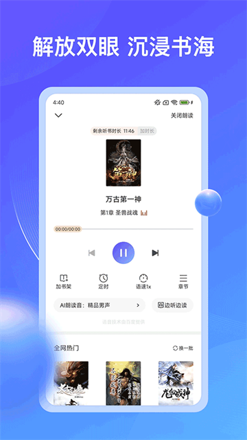 6、支持听书功能,解放双眼,享受不同阅读体验。