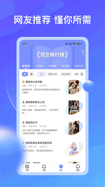 为了让新手能精准的挑选到感兴趣的书本,可以在书本排行榜上挑选,每个书本评分都较高;