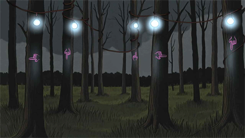 2D手绘的游戏画面,每一帧画面都如悬疑电影分镜,在这一部里恐怖元素更多了一些,比如睁眼的鹿头、卫生间的不明紫色液体、水管如血的水滴等,视觉冲击力比其他几部稍强一点。