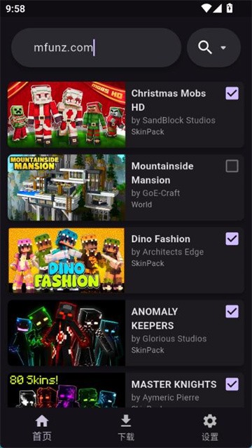 1、软件首页提供了多种类型的模组可以下载。