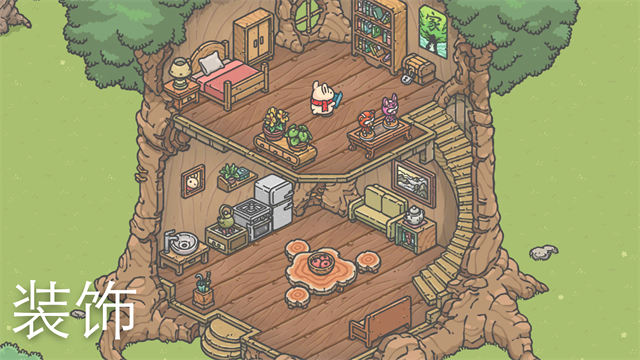 2.个性化家园打造:从基础的餐桌、书架,到主题限定的银河吊灯、蘑菇秋千,海量家具任你搭配。每件物品都配有俏皮说明,比如“这张毯子曾裹过一颗流星”,让布置小屋的过程充满童话感。你可以把房间打造成森林小屋,也能改造成太空舱,一切由你做主。