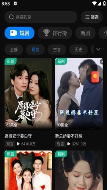 2、【全场免费无门槛】主打“真正免费”的观影理念。通过灵活的激励机制(如极短广告解锁)代替高额充值,让用户零成本刷完百集爽剧。