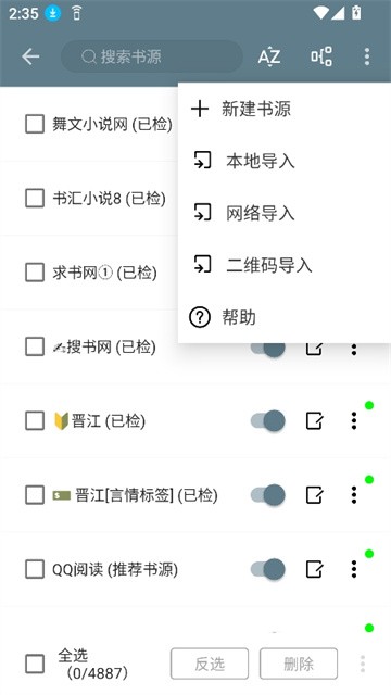 2、通过书源右上角绿点、红点、无标志来直观展示书源状态,方便用户快速了解书源情况。