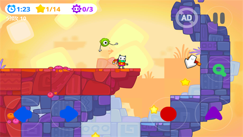 一款休闲趣味闯关游戏,这款游戏采用了卡通风格设计,画风精致可爱,街机感十足的音效紧贴游戏节奏,玩家需要控制凯奇在奇幻的世界中穿梭,搜集星星,消灭怪物,通过各种精巧的关卡设计来挑战自我,凯奇大冒险拥有50个关卡等待玩家挑战,并且每个章节都会揭开一段新的旅程,每一段非常精彩的故事等待玩家来开启。