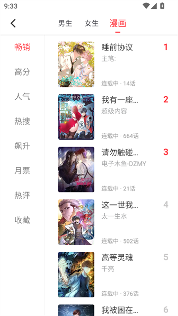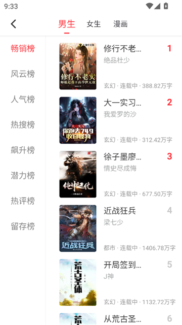 应用内提供了畅销榜、风云榜、人气榜、热搜榜、飙升榜、潜力榜等多个榜单,新老优质内容一目了然。