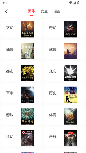 2、在书城界面下,我们可以根据类型、排行、书单等一系列条件进行小说漫画筛选。