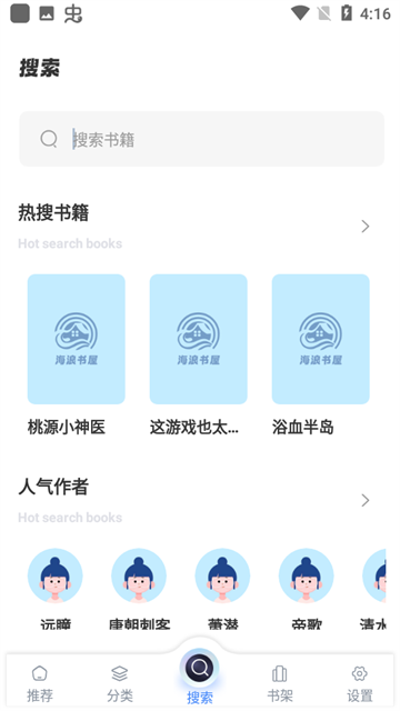 海浪书屋是一款非常好用的小说阅读神器,内置超多优质书源,小说资源种类繁多,分类齐全,满足用户不同阅读需求,支持缓存下载,提供离线阅读功能,节省用户流量,论是想要打发闲暇时光,还是想要寻找心灵慰藉,海浪书屋都能满足你的需求,如果你还没有尝试过海浪书屋,建议你下载试用一下,相信你会爱上它的!