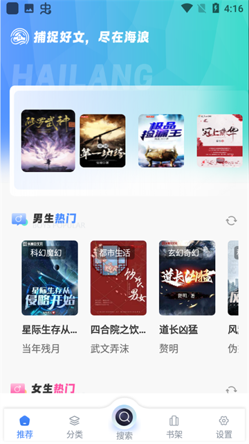 热门推荐,为男生和女生推荐了当前最热门的小说;